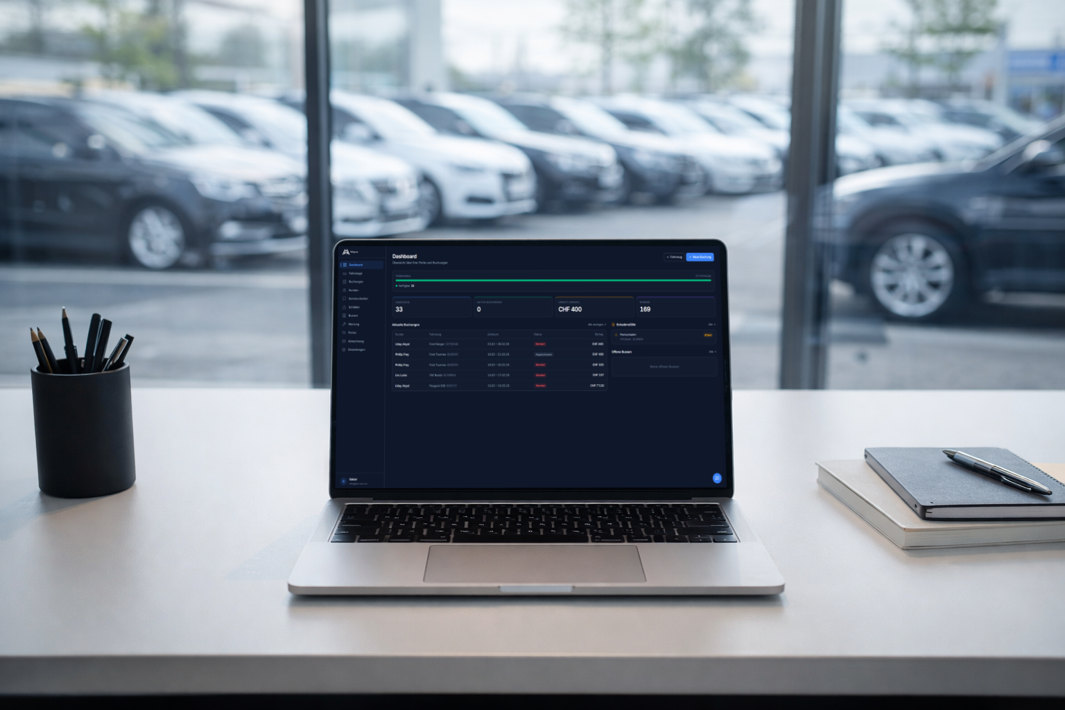 Alle Mietfahrzeuge auf einen Blick: Welches Auto ist verfügbar, welches in der Werkstatt, welches beim Kunden. Kein Excel, kein Rätselraten.