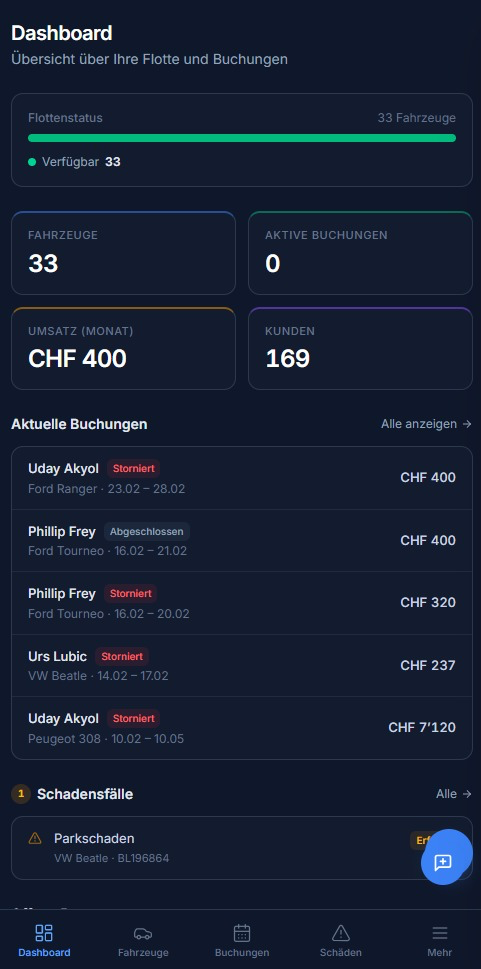 Kann ich auch Transporter und Nutzfahrzeuge verwalten? Ja. Basler Vermieter mit Transporter-Sparte (z. B. für Rheinhäfen oder Logistik) definieren ihre Fahrzeugkategorien frei — vom Kleinwagen über den SUV bis zum 3,5-Tonner.