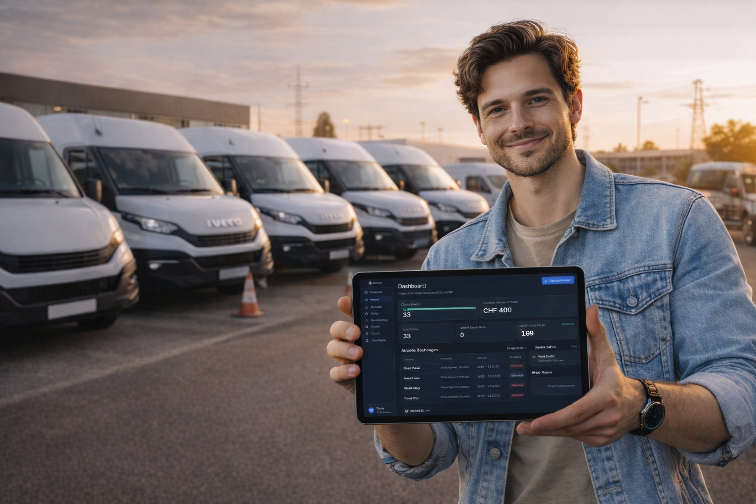 | Schritt | Zeit | |---------|------| | 1. Konto erstellen | 2 Minuten | | 2. Lieferwagen erfassen (Bilder, Masse, Preise) | 20 Min. pro Fahrzeug | | 3. Kilometerpreise & Tarife konfigurieren | 15 Minuten | | 4. Buchungsportal auf Website einbetten | 10 Minuten | | 5. Erste Online-Buchung empfangen | Ab sofort ✓ |
